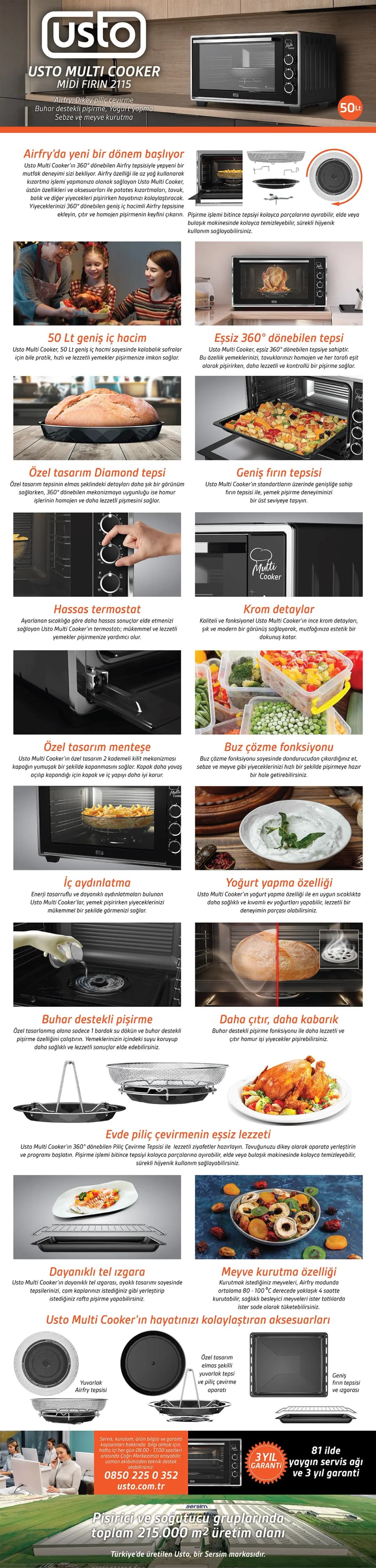 Usto 2115 Airfry Özellikli 50lt Multi Cooker Midi Fırın